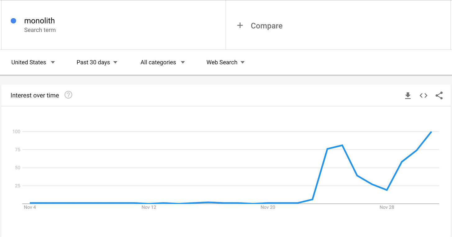 It’s been a wild few weeks for monoliths. This whole fiasco started on Nov 23, when a few folks doing sheep-counting via helicopter saw something shiny in the desert. They found an unmarked, ~10 ft tall metal structure in a desert amphitheater. Media picked up the story, flooding headlines with 2001: A Space Odyssey references and other clickbait. Here’s what happened next.